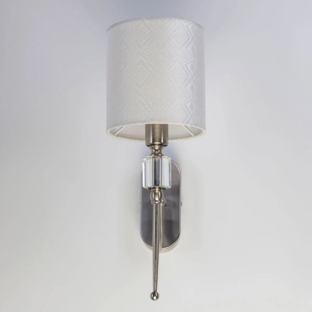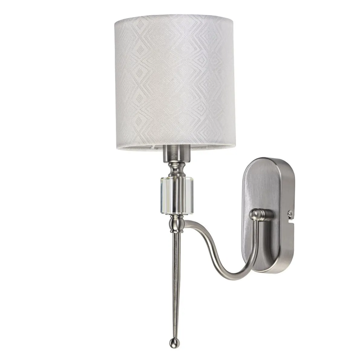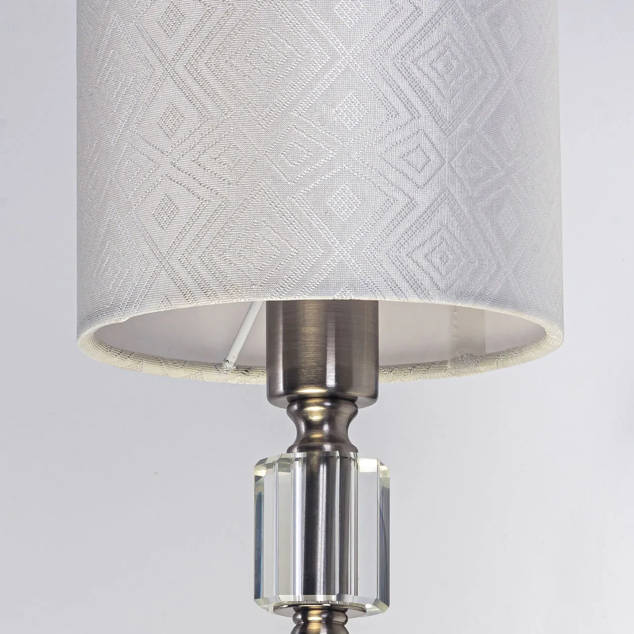Основание/ металл/ никель Абажур/ текстиль, акрил/ белый, прозрачный Декор/ хрусталь/ прозрачный