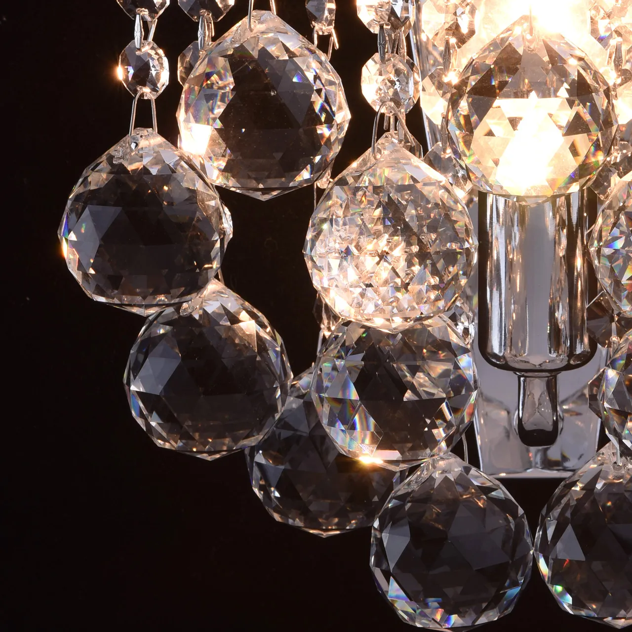 Металлическое основание цвета хрома, декоративные подвески из хрусталя