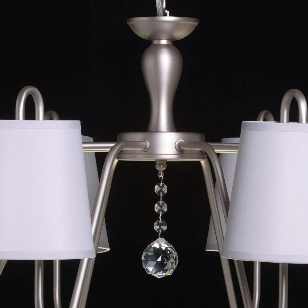 Основание/ металл/ перламутровое серебро Абажур/ текстиль, акрил/ серый, прозрачный Декор/ хрустал