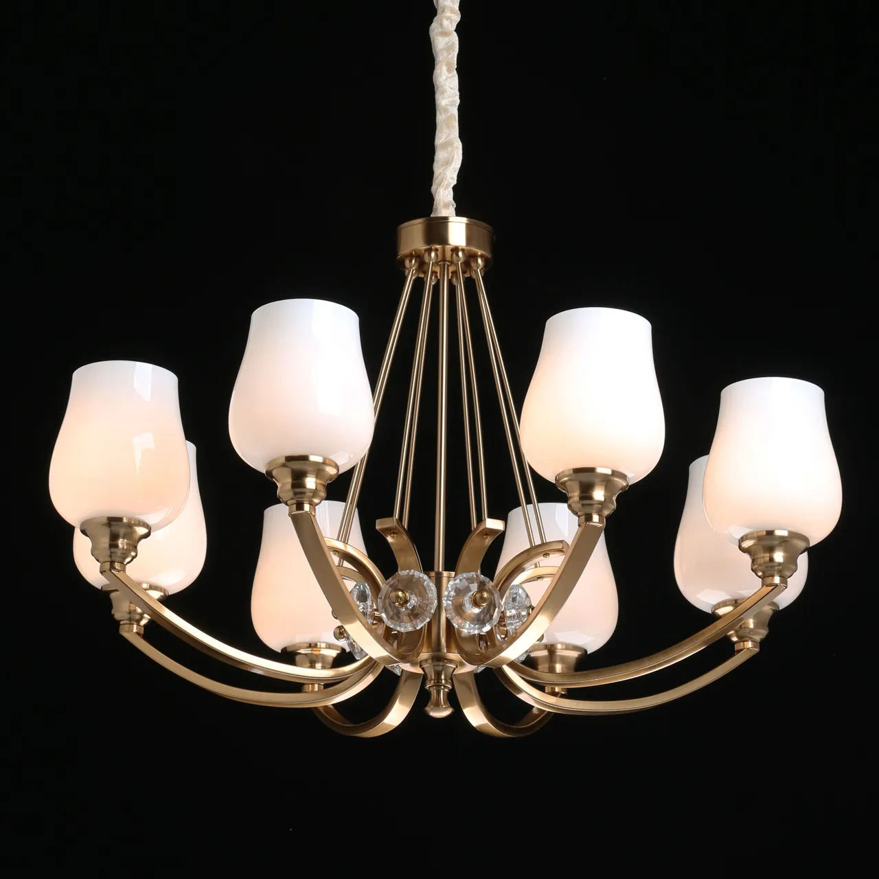 Основание/ сплав алюминия, металл/ латунь Плафоны/ стекло/ белый Декор/ стекло/ прозрачный